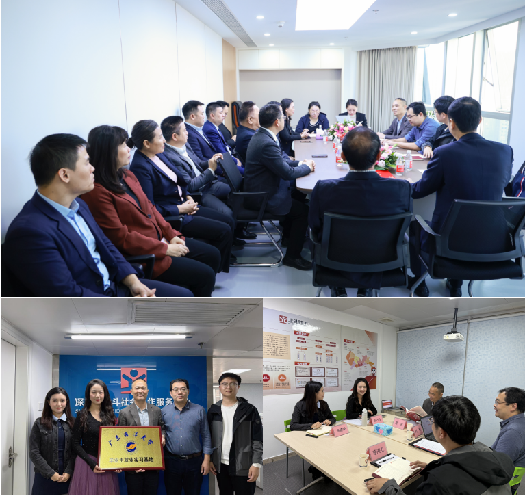 黄善副书记、刘勤副院长一行与深圳市北斗社会工作服务中心相关负责人围绕校企实践合作、人才供需匹配、社会学和社会工作专业学生培养模式、行业未来发展及就业趋势等方面进行了深入交流与探讨。美女av还与深圳市北斗社会工作服务中心签订了合作协议,正式确立其为毕业生就业实习基地,为美女av
